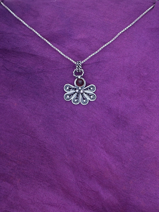 This heart pendant with a garnet stone has a beautiful energetic quality. It has definitely been made with a lot of love and attention to detail. It feels like a magic charm full of healing energy!