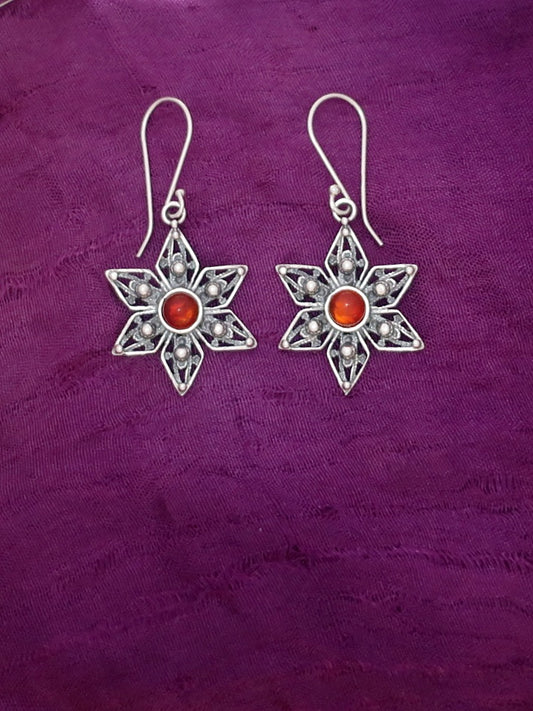 E95- Silver Earrings with CarnelianBeads