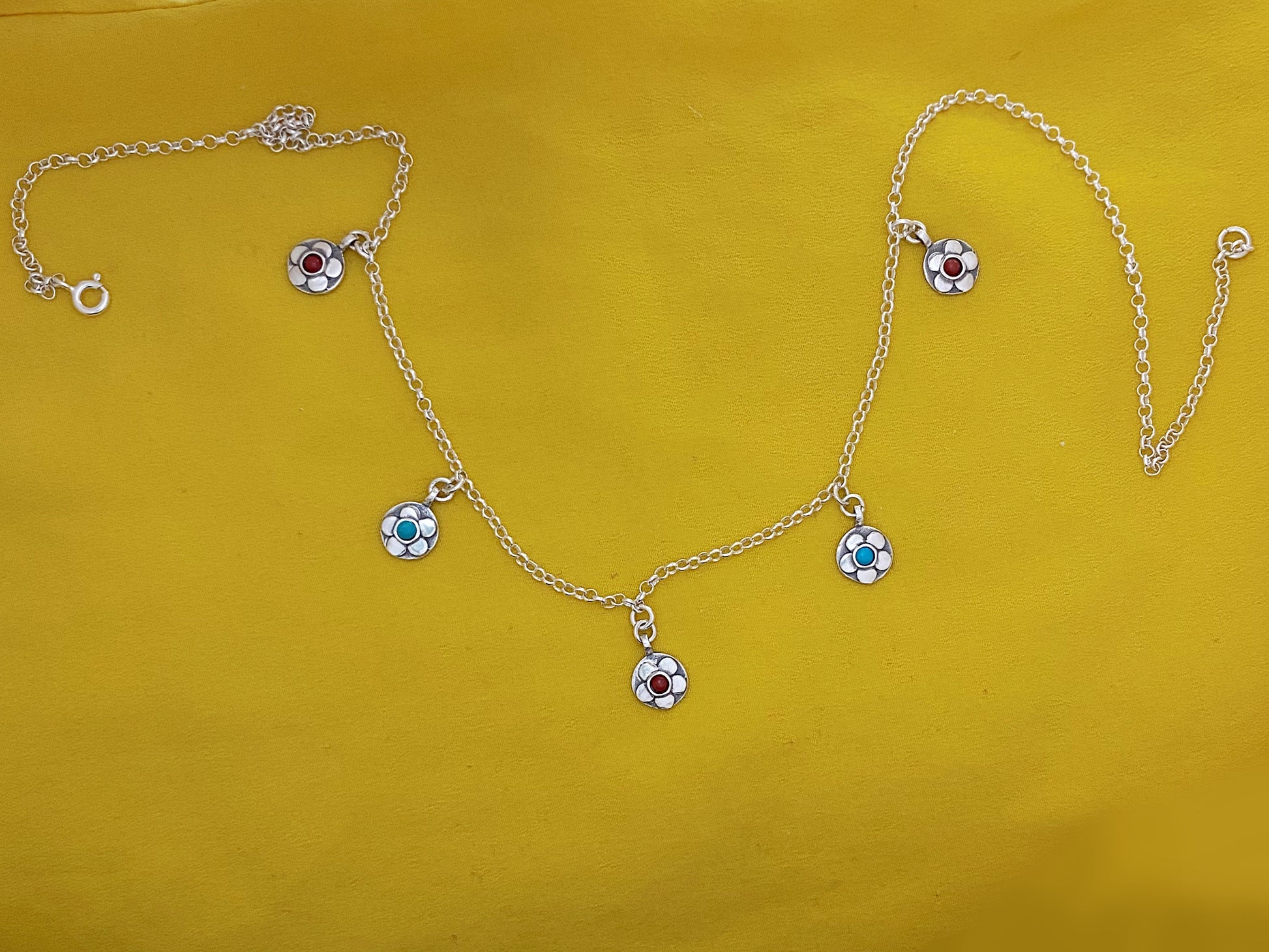• 925 sterling silver flowers necklace with turquoise & carnelian stones